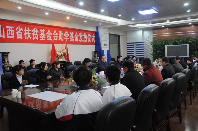 2009年12月8日下午,山西省扶贫基金会助学基金发放仪式在学院东区教学楼四楼会议室隆重举行,学院8个教学院系15位来自农村、家庭经济困难的学生每人获得由山西扶贫基金会提供的助学金2000元。