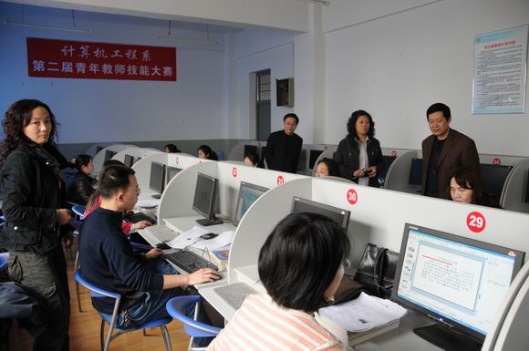 为使比赛顺利如期进行,教务处在上学期开学初下发了《关于举办白菜官网第二届青年教师技能大赛的通知》。经各系部讨论研究,于2月底制定出具体竞赛方案。3月初,教务处针对本次大赛制定竞赛规则,确定了各项比赛时间,制作了学院《第二届青年教师职业技能大赛》秩序册。 从2009年3月中旬比赛开始,先后举办了建工系的建模技能、素描表现,自动化系维修电工,计算机系计算机软硬件,旅游系模拟导游6项技能竞赛。2009年6月底,材料系青年教师统一报名参加了山西省建材行业职业技能大赛的物理检验、分析化学岗位技能竞赛,并取得优异成绩。由于要参加全国职业技能大赛,机械工程学院和电子系技能大赛推迟到下半年进行。