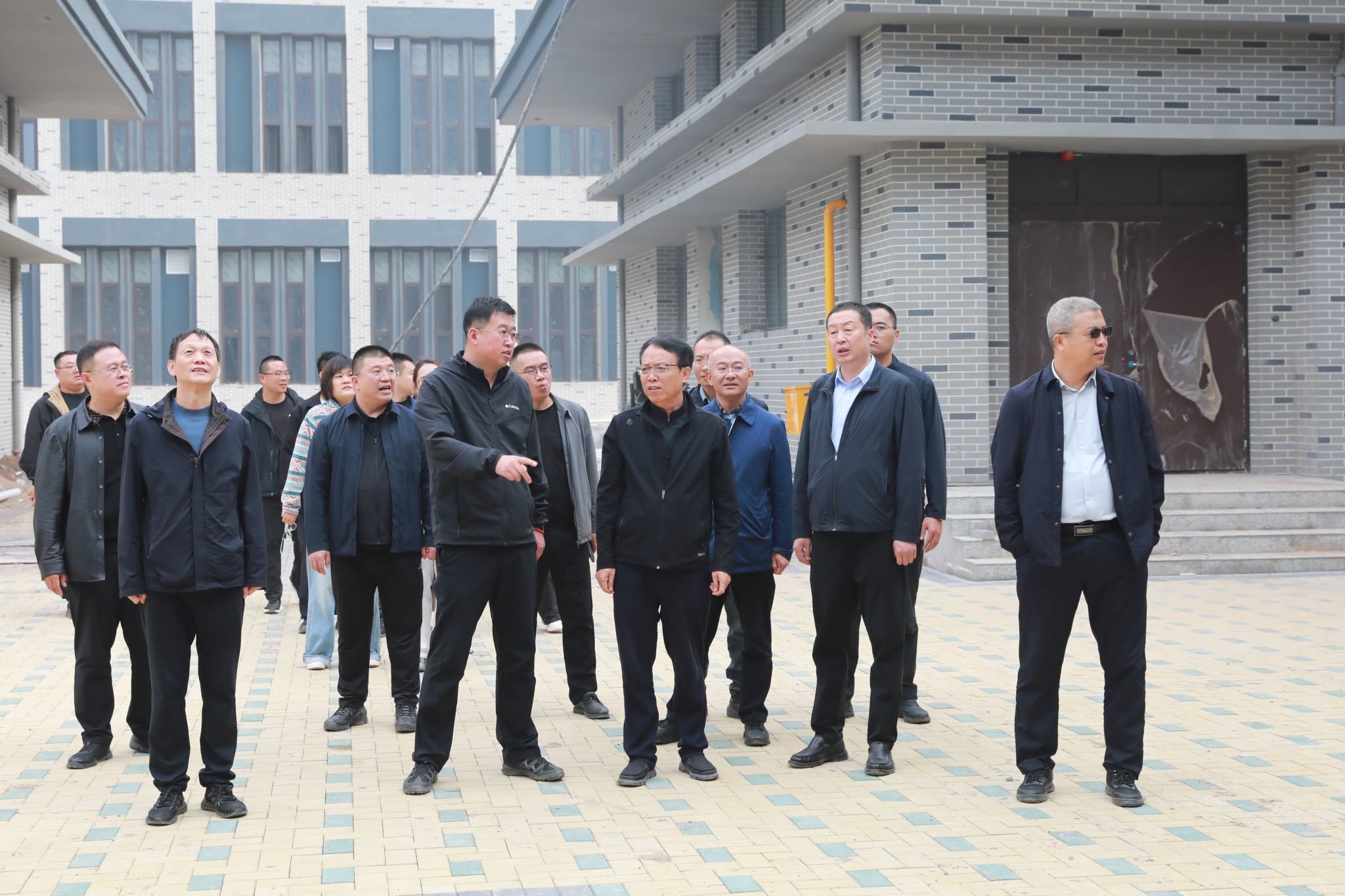 随后,赵随民一行陆续查看了校园大门、围墙、道路、食堂、庭院铺装等施工现场,实地察看项目建设情况。每到一处,大家都认真察看,并同项目负责人和一线施工人员握手交谈,详细了解项目进展、工期安排和节日期间后勤保障等方面情况。赵随民对建设者们节日期间坚守奋战施工一线的精神给予充分肯定,希望他们科学组织管理、强化工作措施、弘扬工匠精神,在确保安全和质量的前提下,全力加快建设进度,确保工程按照既定时间节点有序有效推进。