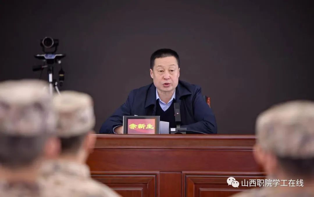 赤新生副院长代表学院向全体入伍学生和父母致以崇高敬意,祝贺同学们经过层层选拔后,实现了光荣的梦想。他指出,入伍同学是学校落实立德树人根本任务的最新成果,体现了深厚的家国情怀,是以实际行动践行社会主义核心价值观的最好体现,在同学们身上看到了山职学子崇高的使命感和责任感。强大的国防需要一代代青年学子贡献青春力量,他希望同学们在进入火热军营后,增强集体意识,展现山职学子的优良风貌,为学校争得更大荣誉。同时,学院将全面落实好各级征兵优抚政策,做好服务,为同学们安心服役保驾护航。